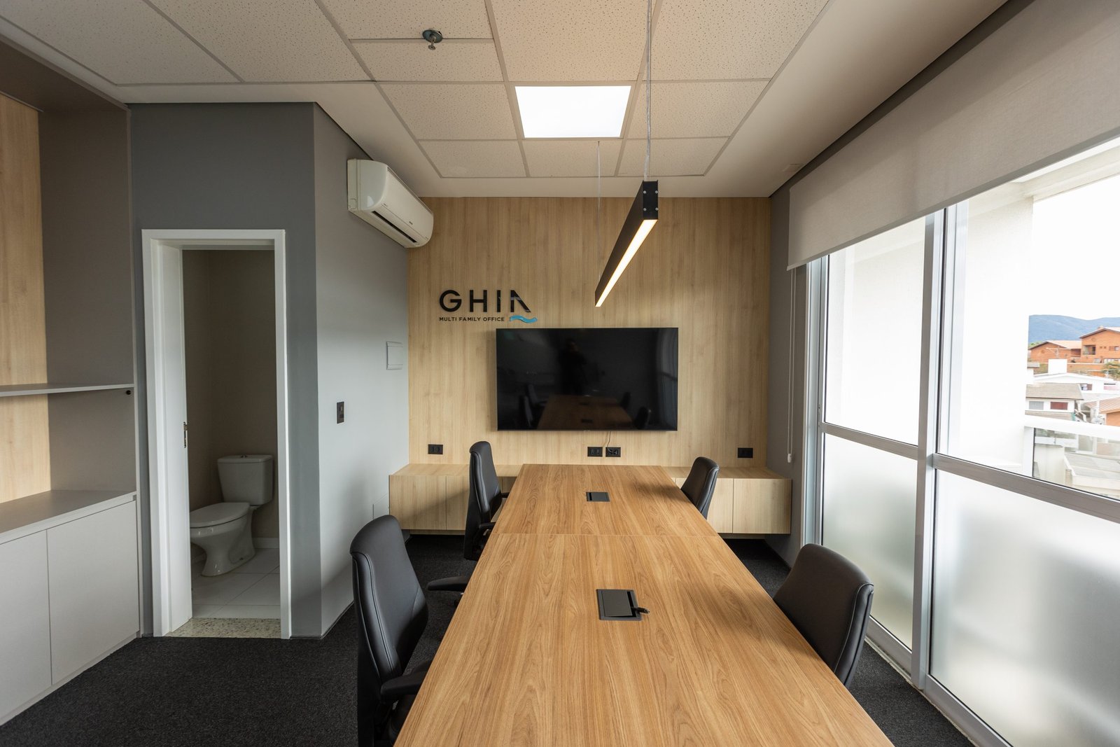 No projeto de reforma do escritório da Ghia, um agente credenciado pela maior corretora de valores mobiliários do Brasil, desenvolvemos a parte de marcenaria para proporcionar uma experiência única aos visitantes.